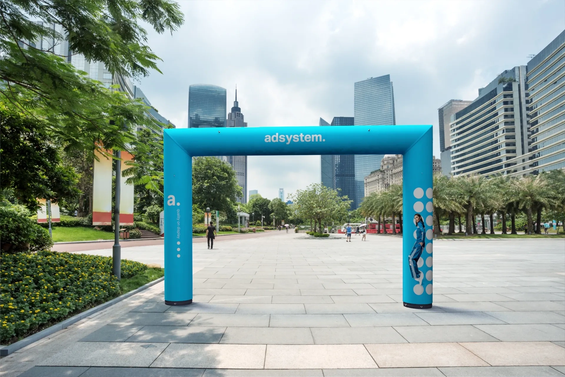 De adGate Air Square is een moderne, opblaasbare reclameboog die jouw merk letterlijk laat opvallen tijdens buitenevenementen. Dankzij de innovatieve constante druksysteemtechnologie blijft de boog stevig in vorm zonder dat een blower of stroomaansluiting continu nodig is. Eenmalig opblazen is voldoende voor een volledige dag gebruik.