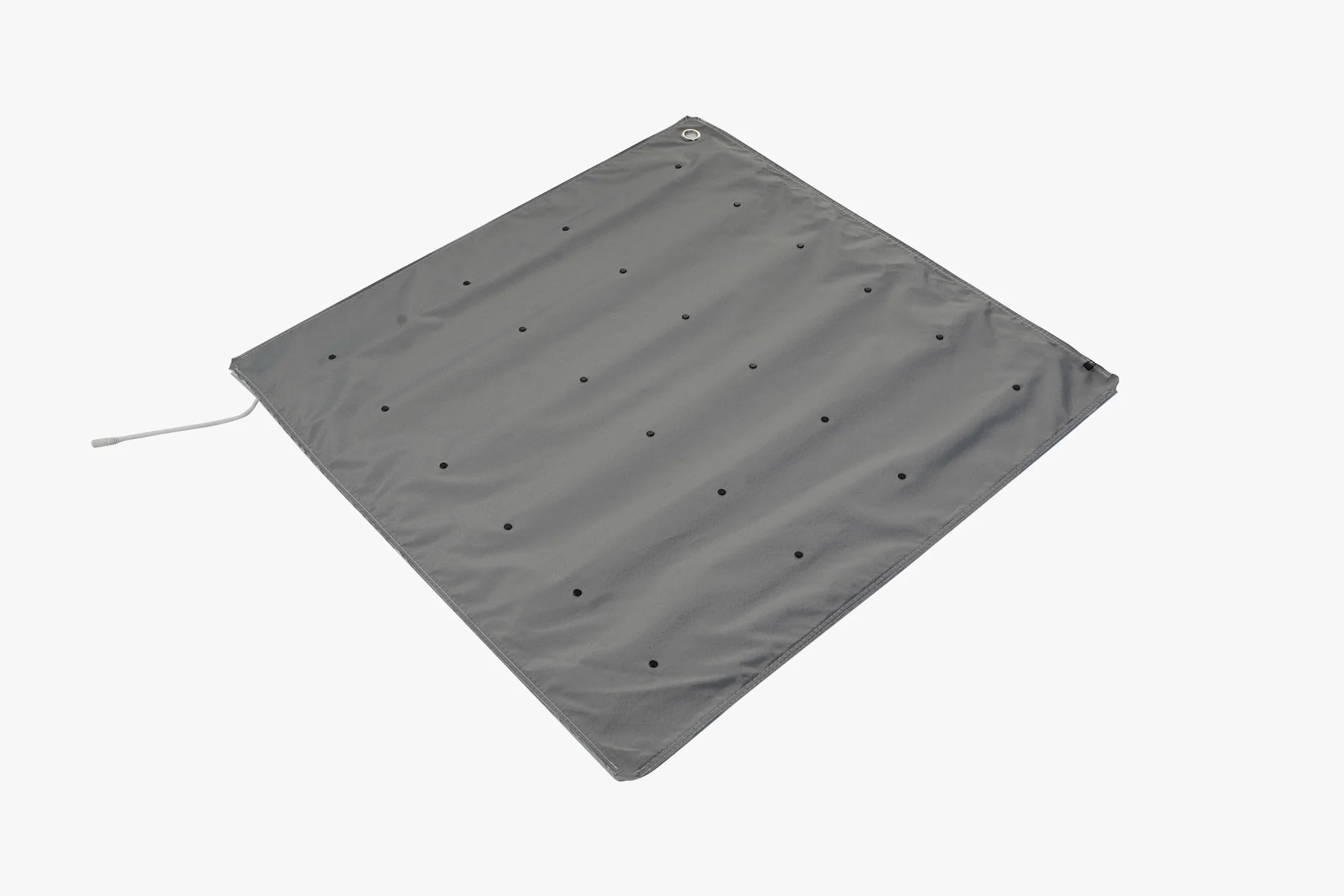 Print: full colour eco-sublimatie op Decotex (1440 dpi, silicone pees), wasbaar op 30°C, B1-brandveilig