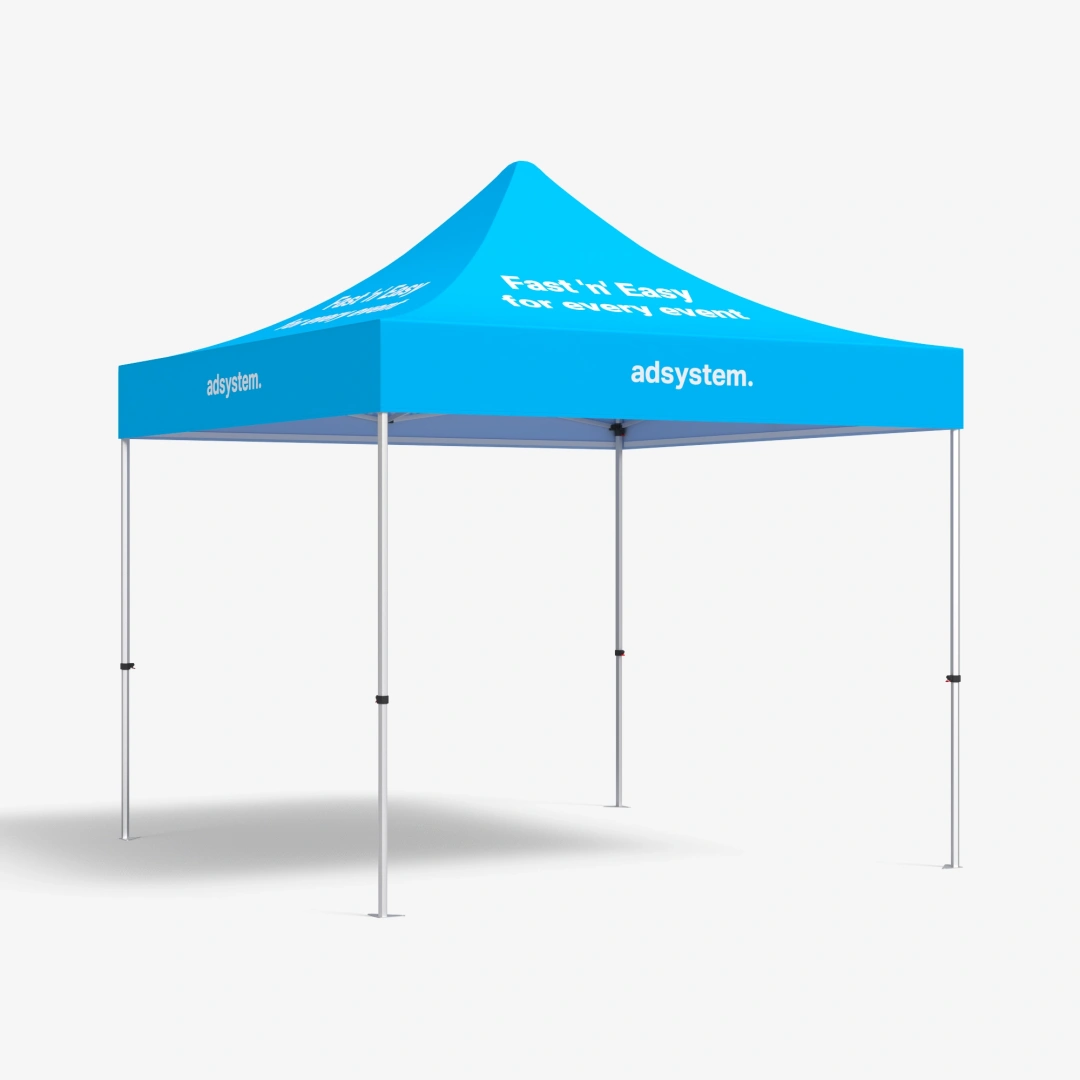 The adTent Express with your own image offers unlimited advertising and marketing opportunities. When you host a new event, there is no need to order new construction, just replace the print with a new message. One of the main features of the express tent is its incredible ease of set-up. Thanks to the innovative frame and intelligent click system, assembly takes only a few minutes. The printed tent is ready to use in no time, so you can concentrate on the rest of your event organization. The frame construction also guarantees the high stability of the tent. The robust materials and sturdy components keep the tent in place even in adverse weather conditions. Whether it is windy or raining heavily, it will be a reliable shelter that provides protection from flooding. The AdTent Express is a frame model that can be assembled quickly and without tools. Thanks to the use of aluminum, they are very light and easy to transport. It easily fits in the trunk of your car, so you can easily take it to various events. The adTent Express tents are available in three sizes, and for each we offer accessories to enhance their functionality. Consider, for example, sand bags, which give the Express Tent more stability, or a flag holder, which allows you to make the most of your own space during an event. In addition, you can also match the tent with a roll or brochure holder to further increase awareness of your brand and its services. Advantages: