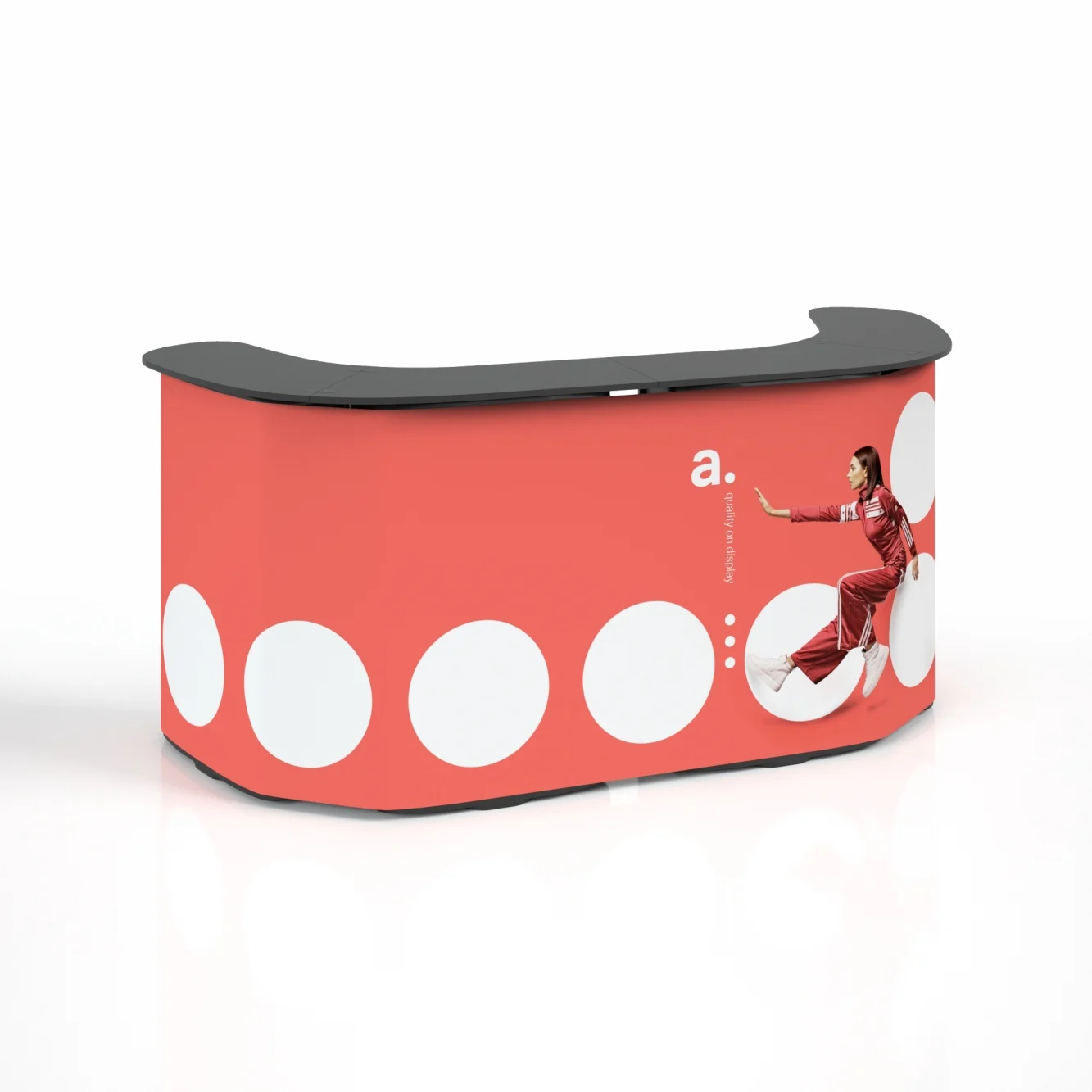 adTribune Shell – advertising stand, event stand, conference stand, promotional desk, presentation stand with full color print, counter for trade shows The Shell advertising desk is a great advertising visual combined with functionality and easy assembly. Read more