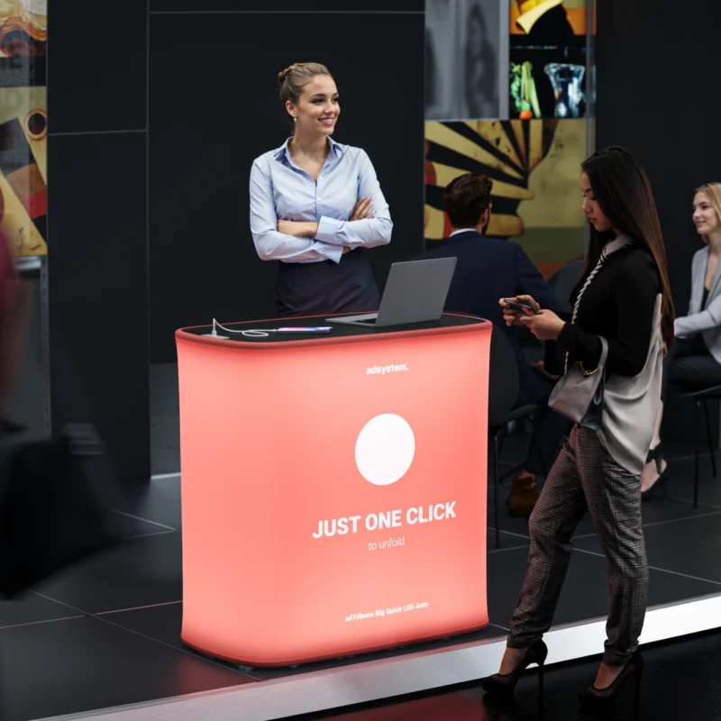 For anyone who wants to stand out even more, we have prepared advertising stands with internal LED lighting. With such a promotional counter, no one will be indifferent to your message.