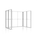 De Sego Ready-Made Sets Beurswanden zijn complete, verlichte beursstands met modulaire zijwanden van aluminium en ingebouwde LED edge lighting. De dubbelzijdige textielprints in full colour worden strak gespannen met SEG-doeken, waardoor je merk vanuit elke hoek goed zichtbaar blijft.